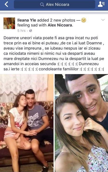 Tot aseară, înainte să plece spre Herculane, tânăra de 15 ani din Åžimian ÅŸi-a reactualizat poza de profil a Facebook-ului, cu una în care se află alături de iubitul ei, Alex. Păreau fericiÅ£i ÅŸi aveau toată viaÅ£a înainte, însă drama în care au fost implicaÅ£i, i-a lăsat fără aripi, mult prea devreme...