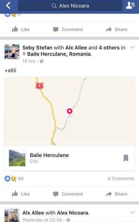 Erau împreună de câteva luni însă aveau în faţă un viitor plin de speranţă. Ironia sorÅ£ii, cei doi îndrăgostiÅ£i au postat pe Facebook, în urmă cu 14 ore, faptul că se aflau în Herculane împreună cu mai mulÅ£i prieteni. Aveau două motive să petreacă: împlinirea vârstei de 15 a tinerei dar ÅŸi majoratul fratelui său, care împlinise 18 ani. Au fost plecaÅ£i cu două maÅŸini. Nimeni nu bănuia că va fi ultima lor ieÅŸire, iar la câteva ore va avea loc drama.
